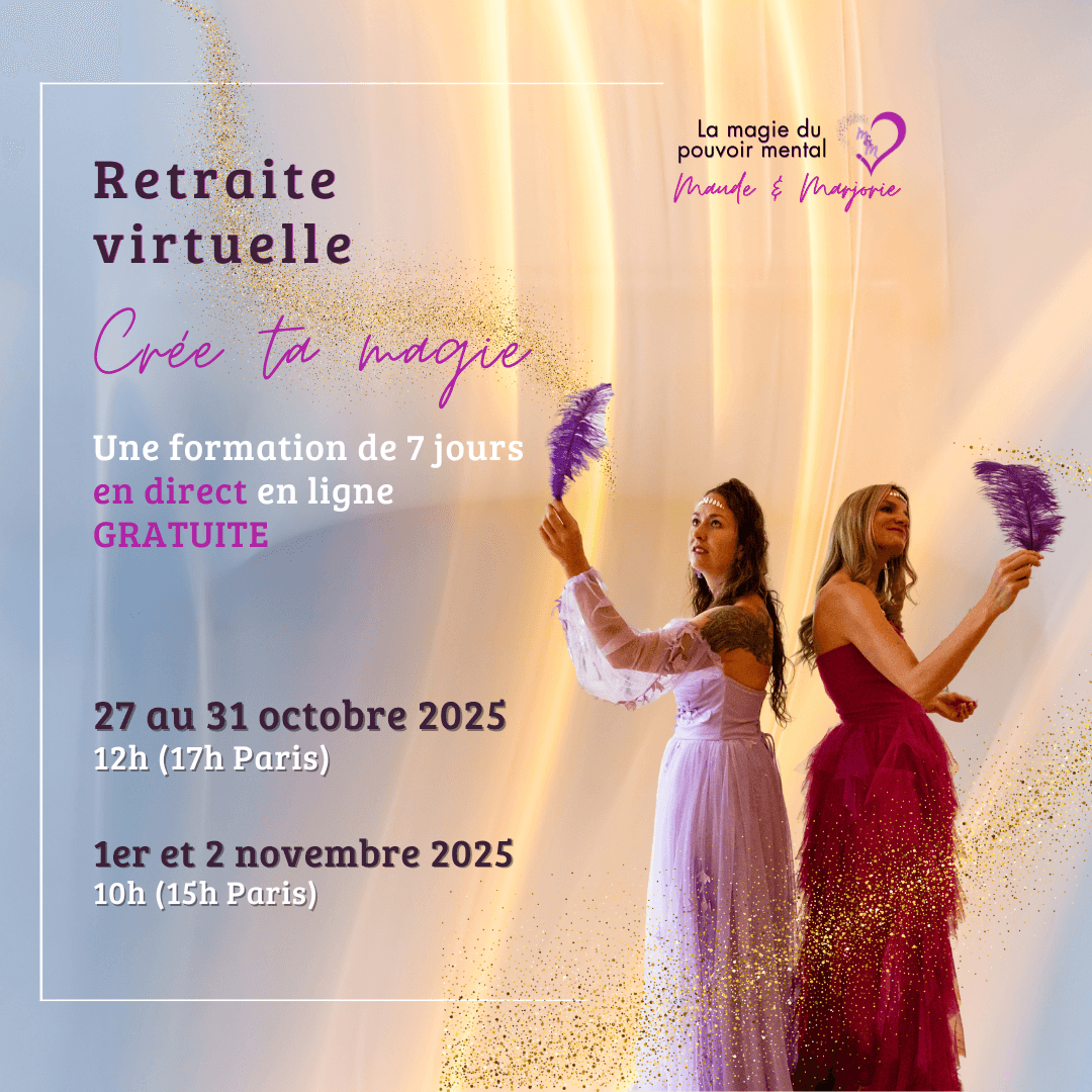 C'est notre mission de t'aider à prendre conscience de ton pouvoir sur ta vie. Nous t'offrons plusieurs activités gratuites pour te permettre de redevenir le maître de ta vie. Inscris-toi à notre prochaine retraite virtuelle "Créer ta magie!".